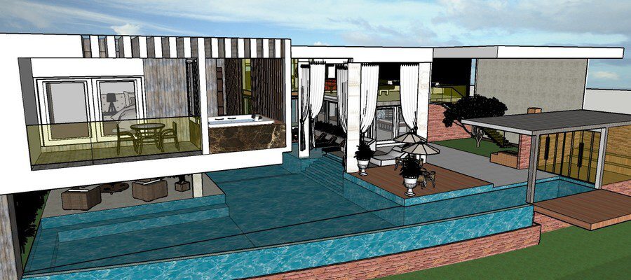 Casa de campo com 438 m2, em estilo totalmente contemporâneo. Quatro suítes incluindo uma com spa a qual contempla uma vista incrível. Os ambiente externos da piscina tem um papel extremamente importante uma vez que fazem toda a integração com os ambientes internos. O jardim de inverno, estrategicamente localizado, traz todo o conforto térmico à casa. A área da churrasqueira possui o ambiente do mezanino, com mesa de sinuca, bar e sala de leitura. Os brizes de madeira trabalham um conforto luminico dos ambientes de estar. A integração da academia com a sala de piscina, lareira a gás e SPA formam um ambiente único.