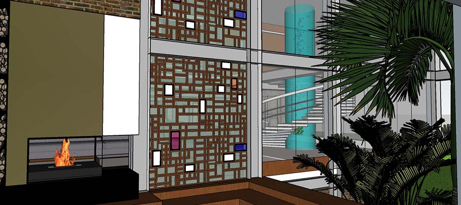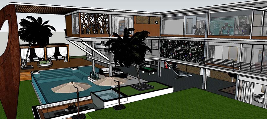 Sobrado de 649,0 m2, em condomínio no interior de São Paulo. Estilo contemporâneo em estrutura metálica, vidro e concreto aparente. Quatro suítes master com banheira, distribuídas nos três pavimentos de construção. Totalmente equipada com academia, piscina, spa, sauna, churrasqueira, sinuca e vestiário. Sala com lareira e aquário. Integração da sala de jantar, cozinha, bar, lounge e jardim japonês com lago. O destaque fica para os vitrais na fachada e as fachadas com vidro.